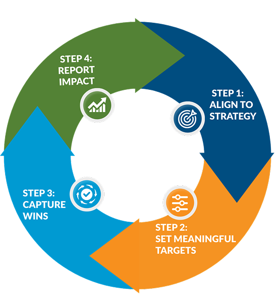 ImpactIT™ is a central component to implementing a program for better stakeholder relationships. It captures your agreed goals and achievements throughout the year (we recommend quarterly), and packages them for executive presentation.